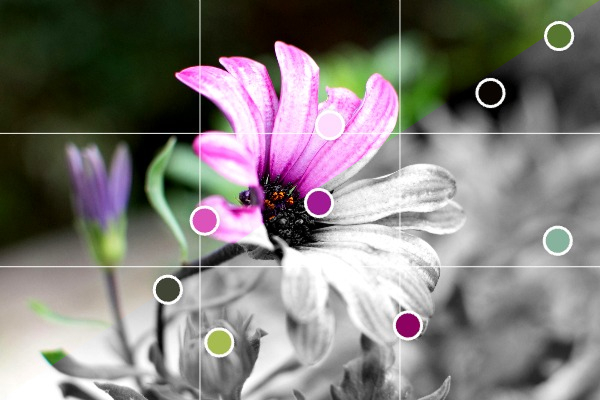 The photo immediately becomes monochrome, but everything else stays in place. Your grids remain visible. Your color markers remain visible. You can still see what colors you identified earlier, but now you see the value structure clearly.