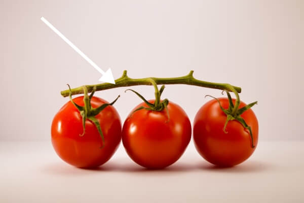 Take a look at this scrumptious tomato picture and try to tell what the color is in the shadow of the stalk.